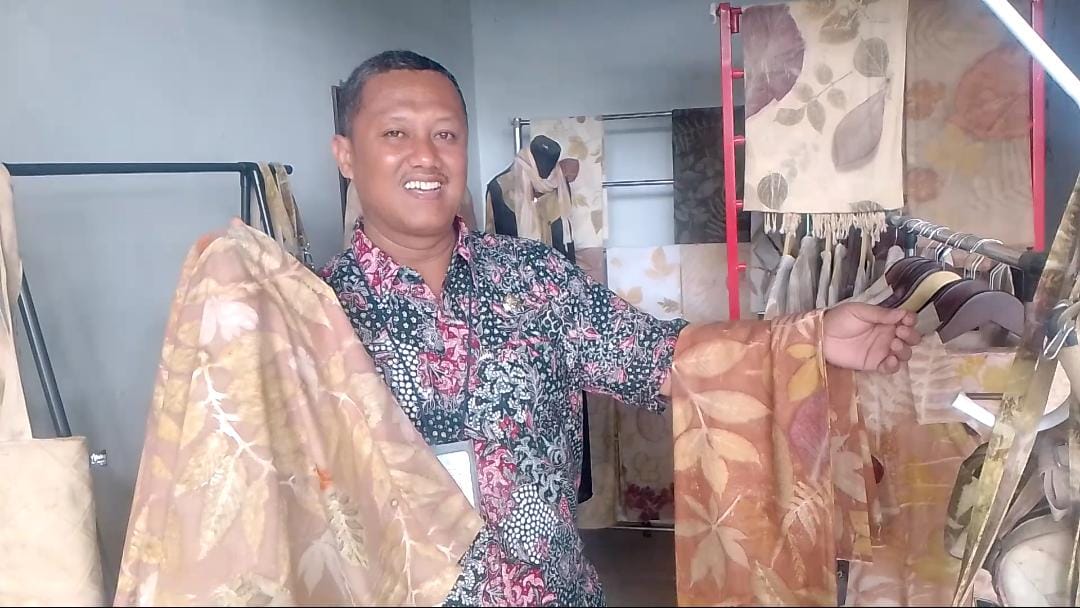 “Awal mula saya mengenal Ecoprint itu ketika saya memberikan les tambahan untuk anak sekolah, saya mendapatkan hijab ecoprint untuk istri saya. Saya lihat unik ada motif alam daun jati, akhirnya saya browsing dan saya berusaha membuat,” kata Sunaryo, Rabu 18 Februari 2026.